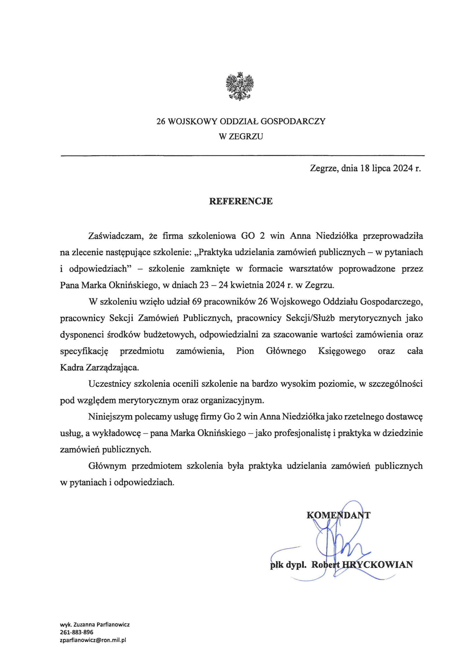 Płatność: na podstawie faktury z 7-dniowym terminem płatności. Faktura będzie wręczona uczestnikowi w ostatnim dniu szkolenia.